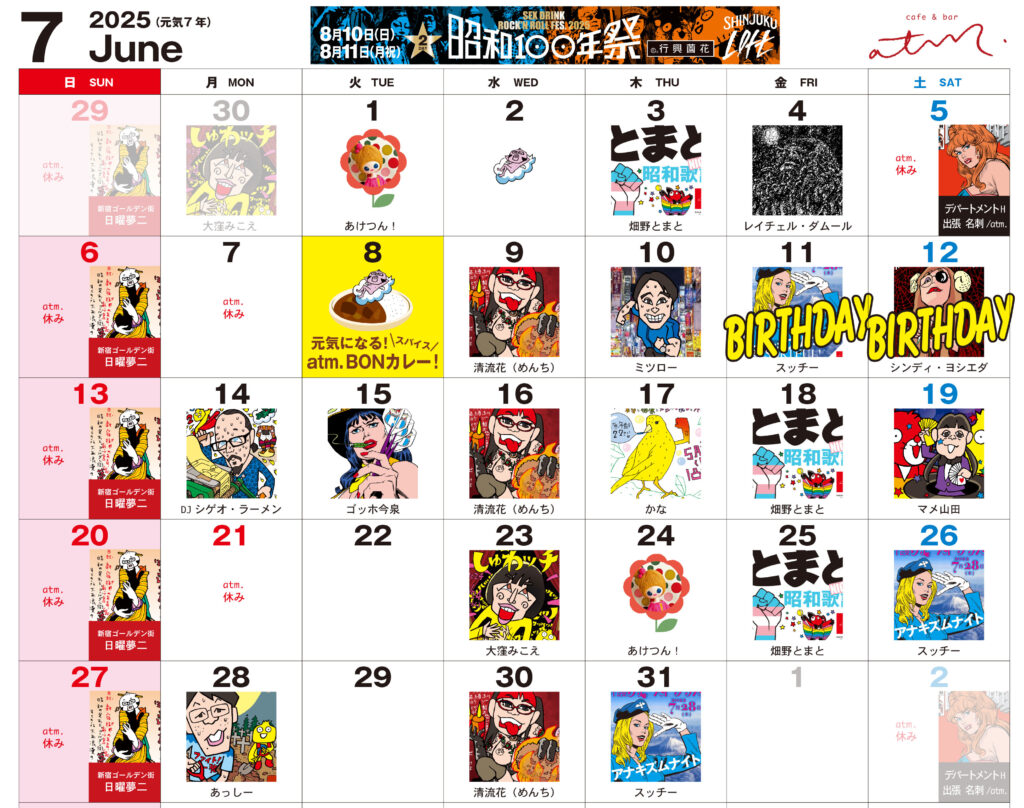 4周年イベントの6月が過ぎ去り7月になりました。このカレンダーが終われば8月。新宿LOFT2DAYS『昭和100年祭』まで待ったなし。